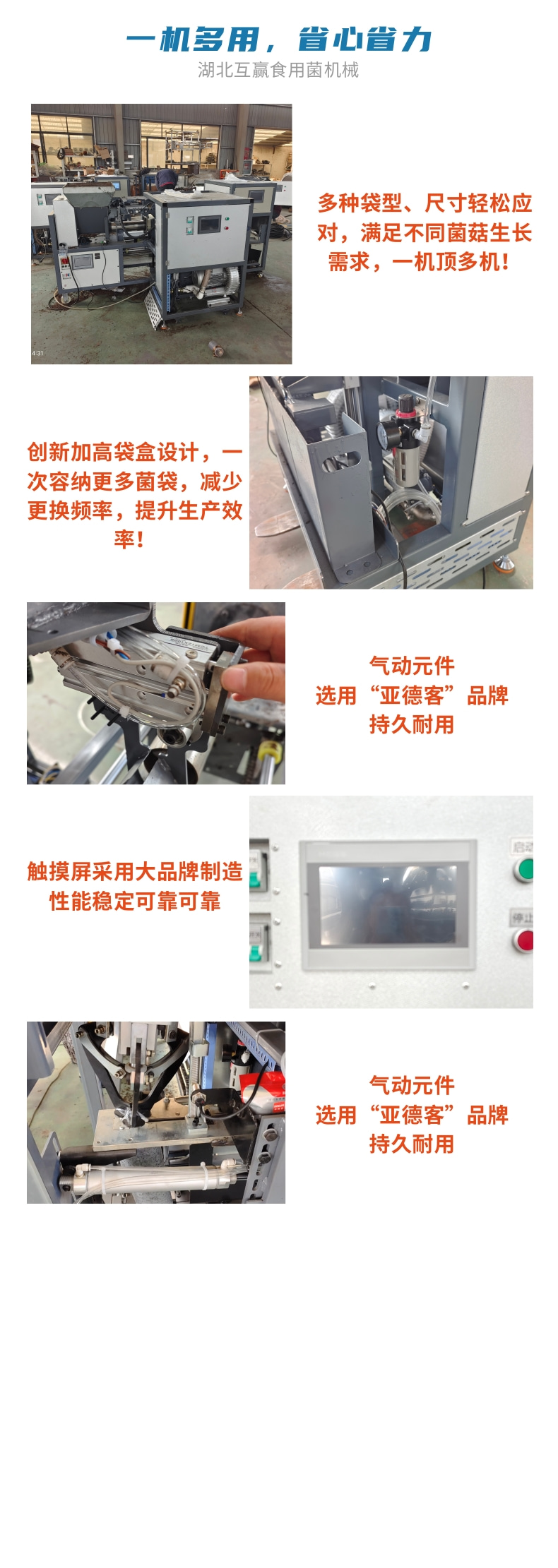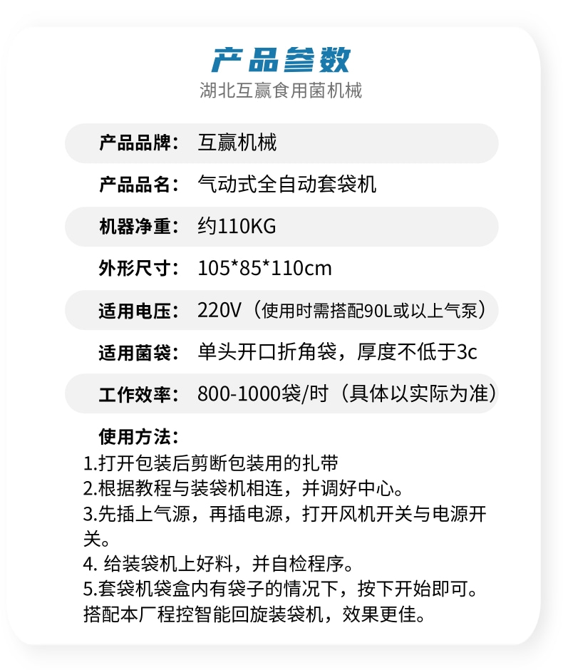 近年來代料香菇裝袋機的發展,越來越迅猛。其規模不斷擴(kuò)大(dà),品種不斷增多,地域限製越來越少。是農民增收的可靠保障,也是地方政府的經(jīng)濟支柱。自動套袋食用菌裝袋機廣泛用(yòng)在香(xiāng)菇、木耳、平菇、金針菇、茯苓、灰樹花、姬菇、秀珍菇等(děng)食用菌種植領域。是工廠、基地、合作社、家庭農場理想的工廠(chǎng)化生產(chǎn)機械。生產(chǎn)規模的大小可根據(jù)資金、銷售量、經營方(fāng)式、技術力量、資源條件等綜合因素來確定,可用單機,也可(kě)組合設計成半機械化...